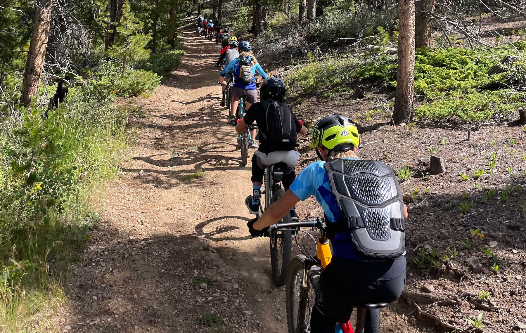 We offer day trips, camps, skills clinics, downhill park days, and summer programming for all skills levels from ages 7 – 18 to provide a variety of benefits such as exploring new and different trails in Summit County, meeting new friends, staying in shape for skiing and snowboarding, competing in a variety of race series, and progressing on a bike throughout a 3 season period. (Spring, Summer, and Fall)